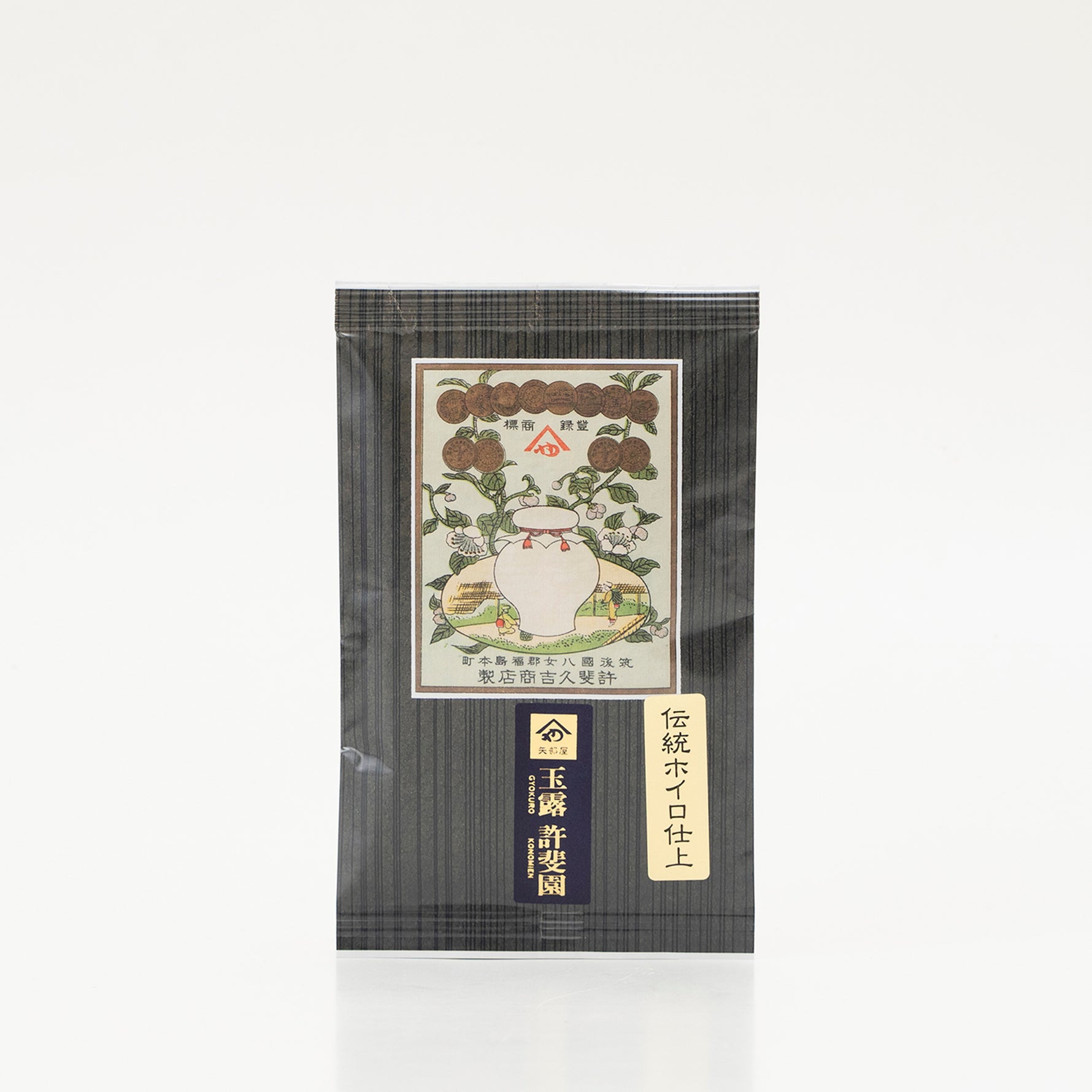 昔ながらの稲わらの覆い下栽培で作られた八女伝統本玉露と機械摘みされた本玉露を理想的な形で調合し、八女和紙の上で炭火でじっくりと火入れした最高級玉露です