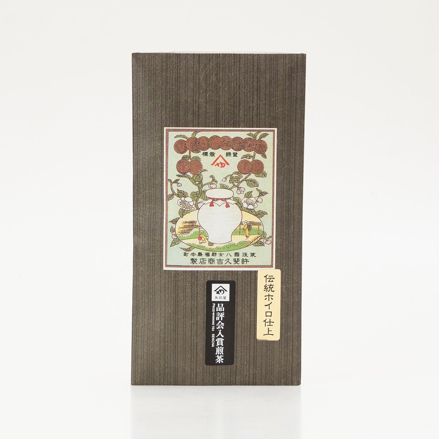福岡県煎茶品評会で入賞した荒茶をもとに 職人の手作業で丹念に仕上げ、さらに昔ながらの焙炉製法:ほいろせいほう(炭火で和紙の上で焙煎する:写真参照)を行うことで、「焙炉香:ほいろか」と呼ばれる芳しい香味付加し、時間と供に熟成が進めば よりまろやかな茶味を感じて頂ける商品です。