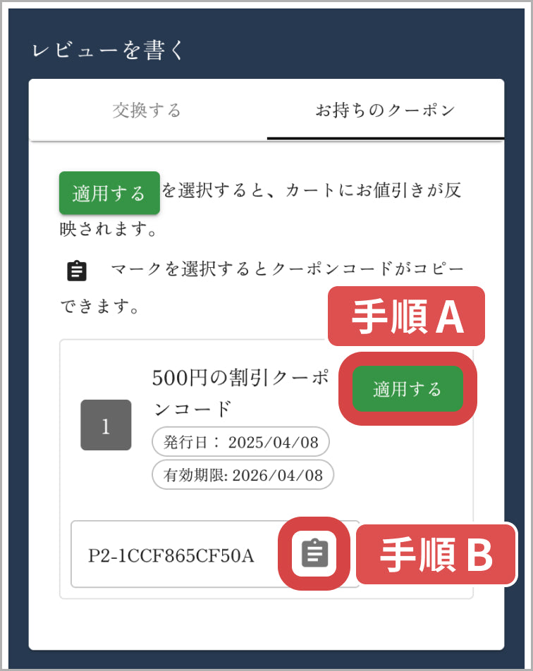クーポンのご利用方法は二つございます。